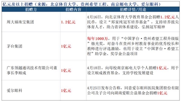 4月大額捐贈一覽:企業(yè)、個人捐贈超12.2億元,抗疫捐贈持續(xù)增加