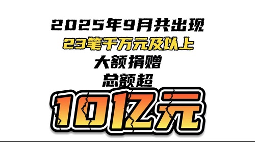 2025年9月大額捐贈(zèng)一覽:千萬(wàn)元及以上捐贈(zèng)超21億元,捐贈(zèng)總額明顯回升