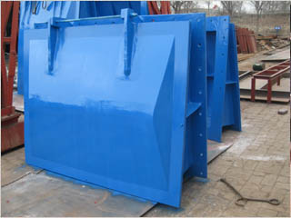 拍門具有流道正向單向開啟和反向關閉的作用。拍門的閥蓋借助于自身配重的平衡作用,在水流的作用下使門頁自動開啟或關閉,或稍加外力作用使門頁開啟或關閉;拍門蓋上設有拉環(huán),拉動拉環(huán)此蓋的開啟角度應大于60度,無卡阻現(xiàn)象,開關應自由靈活,當拍門部分泡在水中,管道內(nèi)部壓力較大,反向壓力較小時,拍門允許部分泄漏量,當河道水壓增大時,拍門將自動關閉密封。