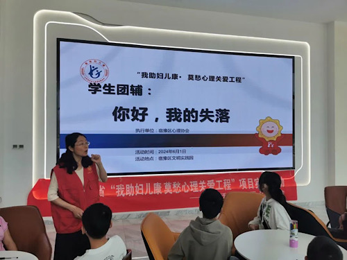 精神關(guān)愛:以“我助婦兒康?莫愁心理關(guān)愛工程”項目為依托,與各方合作建立一批“我助婦兒康?莫愁心理關(guān)愛”公益基地。通過開展心理健康知識講座、心理測評等活動,為全市有心理疏導需求的婦女兒童提供免費幫助。以宿豫區(qū)心理協(xié)會為例,項目實施以來,聚合10位專業(yè)人士的力量,通過多種形式為有需求的婦女兒童提供個性化心理援助等服務(wù)。截至2024年年底,已開展300多場講座和個案咨詢等活動,使2萬多人次婦女兒童得到心理關(guān)愛。