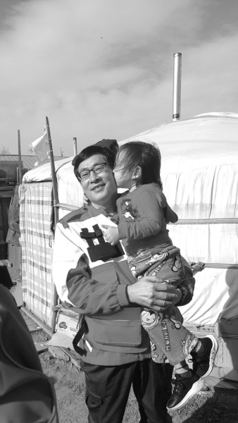 在院子的蒙古包前,我們一行與剛爾登一家道別。蘇俊武主任抱起了這個曾經(jīng)淘氣的小患者,剛爾登親吻了蘇主任的臉頰,表示了對這位救命恩人的謝意。