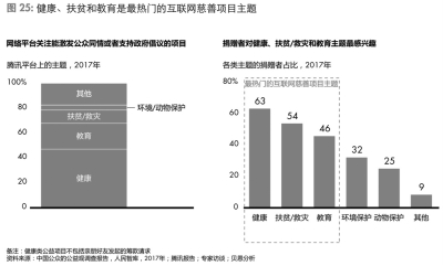 再次,健康、扶貧和教育是最熱門的互聯(lián)網(wǎng)慈善項目主題。