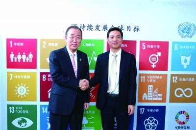 2015年,李彥宏與時(shí)任聯(lián)合國秘書長潘基文會面