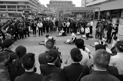2019年2月26日,深圳市急救中心聯(lián)合深圳火車站在該站前廣場開展“出手急救,你也可以”公益宣傳活動(dòng)(受訪者供圖)