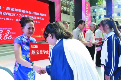 寶豐燕寶慈善基金會在實施一、二期捐資助學項目的基礎(chǔ)上,2017年啟動三期捐資助學項目,新增捐資獎學金12.3億元,新增資助10.56萬名貧困地區(qū)學生完成學業(yè)。今年為9.2萬名受助學生發(fā)放2017年度獎學金2.8億元,新增受助學生2.64萬人。自此,寶豐燕寶慈善基金會每年資助學生保持10萬人左右,每年畢業(yè)約3萬人,每年新增資助約3萬人,每年發(fā)放獎學金近3億元,每年為10萬余個家庭減輕經(jīng)濟負擔、幫助3萬余個家庭實現(xiàn)新的經(jīng)濟增長點。如此大規(guī)模的捐助、如此廣的受益人群,開創(chuàng)了全國教育扶貧歷史之最,為國家和自治區(qū)扶貧攻堅事業(yè)做出了積極貢獻。