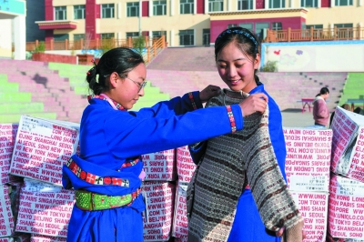 2019年10月16日,囊謙下起了冰雹,寒意初現(xiàn),‘中國(guó)宋慶齡基金會(huì)·優(yōu)衣庫(kù)專項(xiàng)基金’衣物捐贈(zèng)儀式在青海省囊謙縣第一民族中學(xué)舉行。優(yōu)衣庫(kù)捐贈(zèng)了價(jià)值約600萬(wàn)元的7萬(wàn)余件愛(ài)心衣物,為青海地區(qū)的脫貧攻堅(jiān)盡己所能,希望通過(guò)一件件衣服承載的愛(ài)心,為打通貧困攻堅(jiān)最后一公里注入力量。”