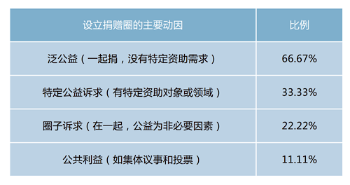 捐贈(zèng)圈發(fā)起人設(shè)立捐贈(zèng)圈的主要?jiǎng)右?。源自《運(yùn)用捐贈(zèng)圈激發(fā)公眾慈善參與的中國模式研究》
