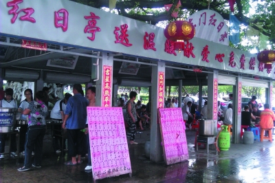 施粥攤發(fā)起人之一、年逾80歲的朱永麟負(fù)責(zé)“紅日亭施粥攤”的財(cái)務(wù),他說(shuō):“給我們捐款的人很多,籌集來(lái)的錢(qián)都存了銀行,這樣收多少、花多少賬目很清晰?,F(xiàn)在,我們賬戶(hù)里有20多萬(wàn)剩余。”他介紹,“紅日亭”不僅施粥,夏天還備下涼茶,每逢傳統(tǒng)節(jié)日,還要準(zhǔn)備一些節(jié)日特色食品,像清明餅、月餅、粽子等免費(fèi)提供。