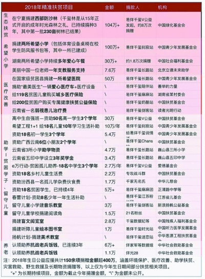 據(jù)統(tǒng)計,僅易烊千璽2018年生日期間,其粉絲的公益應(yīng)援就超過400萬元。該表為這期間其粉絲開展的部分與扶貧相關(guān)的公益應(yīng)援