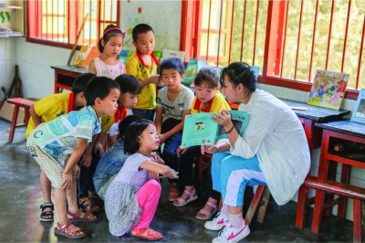 益微青年鄉(xiāng)村夏令營:大學(xué)生志愿者講繪本