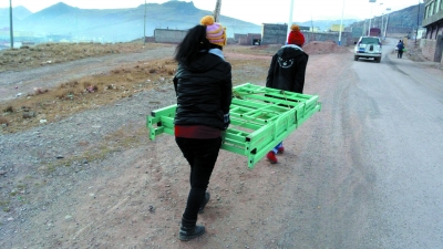 清晨的高原,薄霧還沒有散去,兩兩協(xié)作就已經(jīng)開始。大部分學(xué)校用品都是人工搬運(yùn)的,每個學(xué)生來往2~3趟,每趟大概2公里。