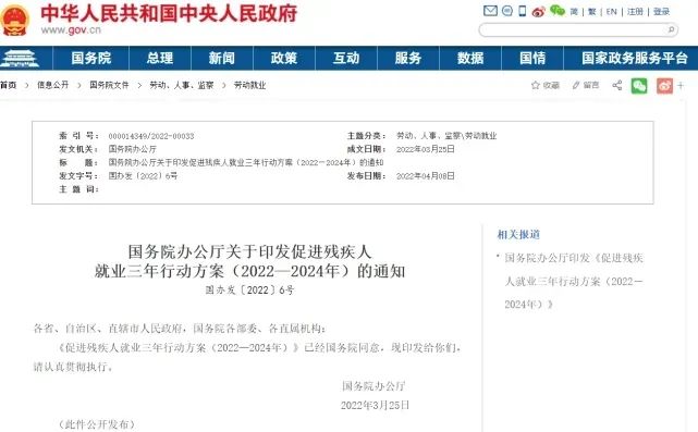 三年新增殘疾人就業(yè)100萬!國務院辦公廳印發(fā)《促進殘疾人就業(yè)三年行動方案(2022—2024年)》