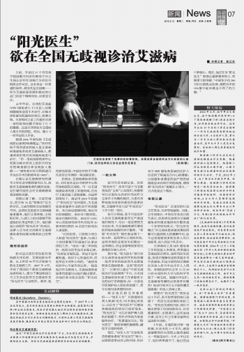 “陽(yáng)光醫(yī)生”欲在全國(guó)無(wú)歧視診治艾滋病