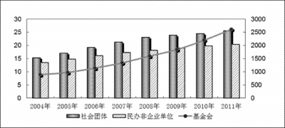 近年我國社會(huì)組織發(fā)展數(shù)量 民政部門接收的社會(huì)捐贈(zèng) 注:圖中柱狀對(duì)應(yīng)左側(cè)數(shù)據(jù)軸,點(diǎn)線對(duì)應(yīng)右側(cè)數(shù)據(jù)軸 ■ 本報(bào)記者 張雪弢 日前,民政部發(fā)布《2011年社會(huì)服務(wù)發(fā)展統(tǒng)計(jì)公報(bào)》。公報(bào)顯示,2011年,全國社會(huì)服務(wù)事業(yè)費(fèi)支出3229.1億元,全年各地直接接收社會(huì)捐贈(zèng)款物495.0億元,救助生活無著流浪乞討未成年人17.9萬人次。 全國共有社會(huì)服務(wù)業(yè)機(jī)構(gòu)129.8萬個(gè) 截至2011年底,全國共有社會(huì)服務(wù)業(yè)機(jī)構(gòu)129.8萬個(gè),比上年增長2.3%,職工總數(shù)1129.8萬人,固定資產(chǎn)總值為6989.8億元,比上年增加6.1%。社會(huì)服務(wù)業(yè)增加值2459.8億元,比上年增長22.1%,占第三產(chǎn)業(yè)的比重1.2%。截至2011年底,全國通過社會(huì)工作師考試的13421人,通過助理社會(huì)工作師考試的40755人。 全國社會(huì)服務(wù)事業(yè)費(fèi)支出3229.1億元,比上年增長19.7%,占國家財(cái)政支出比重為3%,與上年持平。中央財(cái)政共向各地轉(zhuǎn)移支付社會(huì)服務(wù)事業(yè)費(fèi)1808億元,比上年增長34.7%,占社會(huì)服務(wù)事業(yè)費(fèi)比重56%,比上年增加了6.2個(gè)百分點(diǎn)。社會(huì)服務(wù)事業(yè)基本建設(shè)施工項(xiàng)目4533個(gè),全年完成投資總額218.5億元,比上年增長19.4%。 全國共建立 慈善超市8802個(gè) 截至2011年底,全國共建立經(jīng)常性社會(huì)捐助工作站、點(diǎn)和慈善超市3.4萬個(gè)(其中:慈善超市8802個(gè))。全年各地直接接收社會(huì)捐贈(zèng)款物495.0億元,其中:民政部門直接接收社會(huì)各界捐款96.6億元,捐贈(zèng)物資折款4.8億元,各類社會(huì)組織接收捐款393.6億元。 全年各地接收捐贈(zèng)衣被2918.5萬件,其中:棉衣被1647.1萬件。間接接收其他部門轉(zhuǎn)入的社會(huì)捐款3.8億元,衣被588.4萬件,其中:棉衣被410.2萬件,捐贈(zèng)物資折款2714.3萬元。全年有1459.7萬人次困難群眾受益。全年有950.2萬人次在社會(huì)服務(wù)領(lǐng)域提供了9272.6萬小時(shí)的志愿服務(wù)。 全國共有基金會(huì) 2614個(gè) 截至2011年底,全國共有社會(huì)組織46.2萬個(gè),比上年增長3.7%。其中,全國共有社會(huì)團(tuán)體25.5萬個(gè),比上年增長4.0%。全年共執(zhí)法檢查社會(huì)團(tuán)體890起,其中取締非法社會(huì)團(tuán)體12起,行政處罰878起。全國共有民辦非企業(yè)單位20.4萬個(gè),比上年增長3.1%。全年共執(zhí)法檢查民辦非企業(yè)1016起,其中取締非法民辦非企業(yè)9起,行政處罰1007起。 同時(shí),我國共有基金會(huì)2614個(gè),比上年增加414個(gè),增長18.8%,其中:公募基金會(huì)1218個(gè),非公募基金會(huì)1370個(gè),境外基金代表機(jī)構(gòu)26個(gè)。民政部登記的基金會(huì)183個(gè)。公募基金會(huì)和非公募基金會(huì)共接收社會(huì)各界捐贈(zèng)219.7億元。全年共行政處罰基金會(huì)11起。 另據(jù)統(tǒng)計(jì),截至2011年底,基層群眾自治組織共計(jì)67.9萬個(gè),全年共有35.8萬個(gè)村(居)委會(huì)完成選舉,參與選舉的村(居)民登記數(shù)為4.5億人,參與投票人數(shù)為3.6億人。 全國有流浪兒童 救助保護(hù)中心241個(gè) 截至2011年底,全國共有兒童福利機(jī)構(gòu)397個(gè),比上年增加62個(gè),床位6.0萬張,比上年增長20.0%。全國有流浪兒童救助保護(hù)中心241個(gè),床位0.8萬張。全年救助生活無著流浪乞討未成年人17.9萬人次。 民政部會(huì)同財(cái)政部下達(dá)25.2億元中央財(cái)政專項(xiàng)資金補(bǔ)助各地發(fā)放孤兒基本生活費(fèi)。截至2011年底,全國共有孤兒50.9萬人,其中各類社會(huì)福利機(jī)構(gòu)收養(yǎng)兒童10.8萬人,社會(huì)散居孤兒40.1萬人。2011年全國辦理家庭收養(yǎng)登記31424件,其中:中國公民收養(yǎng)登記27579件,外國人收養(yǎng)登記3845件。 全國共有生活無著人員救助管理單位1788個(gè),床位7.9萬張,其中救助管理站1547個(gè),床位7.1萬張。全年救助城市生活無著的流浪乞討人員241.0萬人次,其中在站救助220.5萬人次,不在站救助20.5萬人次。全國共有軍休軍供機(jī)構(gòu)2287個(gè)。其中軍休管理單位1960個(gè),可提供休養(yǎng)戶數(shù)16.0萬戶;軍供站327個(gè),床位3.8萬張。 |
