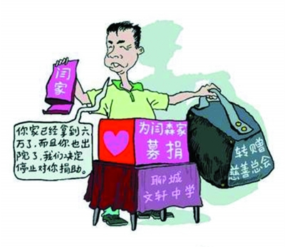 問:學(xué)校組織這次捐款是在什么情況下進行的?捐款之后,學(xué)校又做了哪方面的工作? 文軒中學(xué)辦公室主任謝德芳:閆森是我們學(xué)校的學(xué)生,他去世后捐出了腎、肝、眼角膜,是一種大愛,他的姐姐也患上尿毒癥,這時候2010級二部和學(xué)校政教處、團委就發(fā)出了捐款倡議。為了用好善款,對捐款人負(fù)責(zé),我們后來組織召開了家長委員會商定善款如何使用。我們覺得,善款是學(xué)生捐獻的,學(xué)生沒能力掙錢,學(xué)生的背后是家長,因此召開家長委員會。 問:家長委員會商定后拿出的是什么意見? 謝德芳:3月26日召開的家長委員會,經(jīng)過商定,所捐的款項用于閆森的姐姐閆淑青看病用。每一步我們都咨詢了律師,我們做的事情,合理合情合法。如果說給閆森捐,他已經(jīng)去世,沒必要了,所以倡議書上是說給閆森的姐姐捐款,這是家長委員會上一致通過的。隨后就和閆森的家長簽訂了《捐款協(xié)議書》。 問:閆森的父母對這筆捐款持什么態(tài)度? 謝德芳:他們多次到學(xué)校要錢,哭過、鬧過,想把剩下的善款全部要走,并說家庭困難欠債40多萬,并說捐錢是為閆森家捐的就要給他,后來又提出要一部分作為閆淑青的營養(yǎng)費。當(dāng)時考慮到他的實際情況,讓其提供閆森、閆淑青前期未報銷的單據(jù),和看病期間的來回車費、住宿費單據(jù),將這些拿來后報銷。閆淑青的家長說沒有,沒有憑據(jù)我們沒法給他錢。后來又告訴他閆淑青以后上大學(xué)的學(xué)費、生活費都可以從善款中解決,但閆森的父母執(zhí)意要錢。 問:學(xué)校對這筆捐款又持什么態(tài)度呢? 謝德芳:我們堅持按簽署的《捐款協(xié)議書》執(zhí)行,我們捐的錢用于救命、救急,但不救窮,我們當(dāng)時給他的家長解釋得很清楚。 問:這筆捐款怎么用,是誰說了算? 謝德芳:我們學(xué)校僅是善款的執(zhí)行者,全體師生及全體家長才有權(quán)決定善款的用途。學(xué)校的工作重點在教學(xué),我們沒有過多精力牽扯到這個事件當(dāng)中,為了讓善款有一個妥善的處理方式,我們提請家長委員會表決如何處理。 家長委員會上我們提供了幾種解決方案,全體家長一致同意采用如下方案: 鑒于閆淑青已出院,我們的捐款目的已達到,根據(jù)《捐款協(xié)議書》第六條:“如捐款目的達到后,捐款還有剩余,則甲方全部轉(zhuǎn)移給紅十字會,以服務(wù)于社會?!蔽覀兣c紅十字會聯(lián)系,紅十字會說其人手少,工作忙不受理我們的轉(zhuǎn)捐。我們又聯(lián)系了慈善總會,慈善總會非常支持我們的工作,愿意接納我們的轉(zhuǎn)捐,并答應(yīng)可以視情況繼續(xù)關(guān)注此事。鑒于此,我們?nèi)w師生代表及家長委員會代表決定把剩余款項251,619.04元,全部捐獻給聊城慈善總會。 (摘自媒體公開報道) |