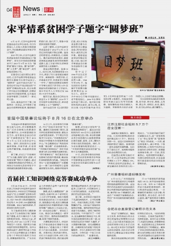 宋平情系貧困學(xué)子題字“圓夢(mèng)班”