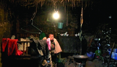 這位孩子名叫熊守會,父親已經(jīng)在貴陽打工8個月,所賺的錢只夠父親在城里勉強度日。這個冬天熊守會只有身上這件單薄的棉襖陪她“過冬”,由于嚴寒,她的手已經(jīng)被凍傷。 |