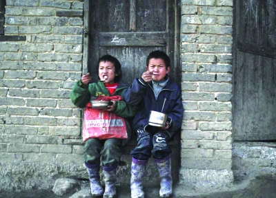 泥樹小學是一所民辦小學,也是村里唯一的學校。由于條件惡劣,沒有人愿意來此工作,高中畢業(yè)的陶進軍是村里唯一的老師。教育資源嚴重短缺的泥樹小學只有一個六年級和三年級。圖中是課余時孩子站在教室外。 |