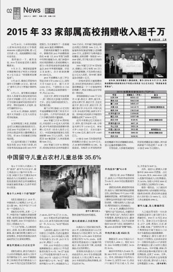 2015年33家部屬高校捐贈(zèng)收入超千萬(wàn)