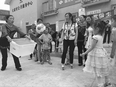 5月29日當(dāng)天,雅安市雨城區(qū)上里鎮(zhèn)七家村的壹基金-兒童服務(wù)站舉行了慶“六一”活動,在親子游戲“你投我接”游戲中,一位奶奶正在努力接孫女投來的球。5月31日,壹基金支持雅安本地6家社會組織開設(shè)的20個壹樂園兒童服務(wù)站全部建成開放。20家社區(qū)兒童服務(wù)站將輻射雅安市天全縣、寶興縣、蘆山縣和雨城區(qū)共4個區(qū)縣20個農(nóng)村社區(qū),讓2000余名農(nóng)村兒童直接受益。