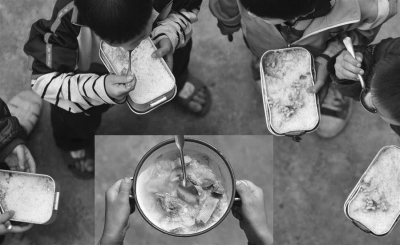 曾經(jīng),廣西某校小學(xué)生每天午餐是“白米飯就水煮黃豆”(上圖2011年3月24日)。“營(yíng)養(yǎng)改善計(jì)劃”實(shí)施以后,孩子們能吃到營(yíng)養(yǎng)搭配的飯菜(下圖2017年5月7日,攝影 黃孝邦/新華社)。