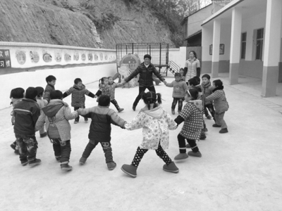 農(nóng)村小規(guī)模學(xué)校是中國教育的“神經(jīng)末梢”,對鄉(xiāng)村的社會價值不可低估,還被賦予“阻斷貧困代際傳遞”的重要使命,卻面臨著缺人、缺錢、環(huán)境差的困境。要從補短板、為教育公平托底的角度,從上到下都來關(guān)注農(nóng)村小規(guī)模學(xué)校,切實辦好農(nóng)村小規(guī)模學(xué)校。圖為湖北省黃岡市英山縣楊柳灣鎮(zhèn)筧沖灣小學(xué)教師在帶領(lǐng)孩子們做游戲。