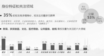■ 本報記者 皮磊 9月24日,由深圳國際公益學院(China Global Philanthropy Institute,簡寫為CGPI)、國際公益學院校友會主辦,中國獅子聯(lián)會等機構支持的2017首屆CGPI校友論壇在北京舉行。此次論壇以“共享,共生”為主題,強調“專業(yè)筑善,聯(lián)合行動”,旨在展現(xiàn)由國際公益學院培養(yǎng)出來的慈善領軍者在中國公益專業(yè)化道路上的思考與行動,論壇呼吁慈善行業(yè)通過教育走向專業(yè)化,鼓勵橫向合作,以聯(lián)合行動更加有效地解決社會問題,引領社會文明,推動社會進步。 據了解,國際公益學院校友會成立于2016年10月18日,目前已經成為國內最大的公益領袖社群。在論壇上,國際公益學院助理院長、教務長曾晶發(fā)布了《國際公益學院校友年度報告2017》。該報告針對國際公益學院近300位GPL、EMP、EPL校友進行了數據調研與分析(10天以上在校學習時間,含北京師范大學中國公益研究院EMP/GPL畢業(yè)生)。 報告顯示,在這些當中,研究生學歷以上的超過50%,有海外教育背景的超過20%,有商學院EMBA/MBA背景的超過30%。其中有15年以上工作經驗的超過65%,機構管理層和決策層比例超過90%。 在身份特征方面,有35%的校友擁有多棲身份,校友生態(tài)圈多元跨界,包括包括董事長、總經理、公益機構創(chuàng)始人、理事長、秘書長、知名媒體人、文體明星等,其中有兩名GPL學員——董方軍和游忠惠加入了“捐贈誓言”。 在所關注領域方面,數據顯示校友最為關注的領域為教育、扶貧助困、文化、醫(yī)療救助、公共服務、助殘等,其中有72%的校友都關注教育。 校友所在機構實力也是外界比較關注多的話題。數據顯示,校友所在企業(yè)有20%為上市公司,校友所在公益機構凈資產總額超過 110億元。另外,校友所在機構覆蓋了9個國字頭基金會,2016年度公募top10占六席,非公募top10占五席。 該報告還從捐贈、公益項目及支出、行業(yè)創(chuàng)新/行業(yè)支持/國際化、校友合作以及回饋學院等五個方面對校友的成就和影響力進行了分析。 在個人捐贈方面,96%的校友2016年度有個人捐贈行為,實際捐贈總額超過1億元人民幣;而據不完全統(tǒng)計,個人年度實際捐贈超過百萬的有八位,過千萬的有三位。而在機構捐贈方面,50%的校友機構在2016年度有捐贈行為,平均額度為200萬元。分析顯示,校友捐贈領域排在前五位的是教育、扶貧助困、醫(yī)療救助、助殘、公共服務。 在公益項目及支出方面,校友公益項目數量為855個,覆蓋全國31個省、市、區(qū)及特別行政區(qū)以及海外。據不完全統(tǒng)計,校友所在機構2016年度公益支出超過47億元,年捐贈收入60億元。校友公益項目覆蓋領域前五位是教育、扶貧助困、醫(yī)療救助、環(huán)保、文化。 在行業(yè)創(chuàng)新、行業(yè)支持以及國際化方面,有35%的校友進行過公益金融與社會創(chuàng)新領域的實踐,比如,瑪娜數據科技發(fā)展基金會執(zhí)行委員會會長張維致力于推動公益信用體系建設,捐贈了中國第一支股權捐贈信托;王建邦在北京市永源公益基金會首期捐贈620萬元,發(fā)起成立DAF(Donor Advised Fund捐贈者建議基金)家族傳承的“建邦永續(xù)基金”;64%的校友曾為支持行業(yè)發(fā)展積極貢獻機構和個人資源(如場地、媒體資源、活動代言、志愿服務等);30%的校友在開展公益事業(yè)時有國際性舉措和合作,包括對境外機構捐款、在境外設立公益機構,與境外公益組織合作實施項目等。 在校友合作方面,超過42%的校友進行過校友間合作,比如GPL/EMP 錢軍和多位EMP校友推動的廁紙項目,EMP李克梅和EMP李國武推動的愛飛翔項目,EMP葉大偉和ELP/GPL陳劍光推動的姚基金希望小學籃球季全國集訓和聯(lián)賽等。 在回饋學院方面,有40%的校友曾經為學院提供過捐贈、資源對接或項目合作;88%的校友曾經為學院的品牌及課程影響力進行過推廣;86%的校友愿意對班級活動及校友會事務付出自己的時間與精力;86%的校友為課堂提供過自己的案例,積極參與課堂活動;85%的校友參與每一次的行動計劃討論與實施,積極與講師溝通并給予回應。 除上述內容,該報告還分析了校友在國際公益學院學習期間的收獲,這段學習經歷對其個人提升和機構提升都產生了顯著的積極作用:近40%的校友在學院學習后創(chuàng)立新的公益項目或創(chuàng)辦非營利組織;92%的校友通過學院學習帶動身邊人積極參與公益活動;85.3%的校友認為學院學習可改善與家人的相處,促進家庭和睦;97%的校友認為學院學習有助個人身心健康發(fā)展。 在對機構的影響方面,36%的校友認為學院學習能幫助他們提升籌資能力,從而提升機構籌資額,這其中有機構籌資額最高提升了464.3%;88.2%的校友認為學院學習對其所在的機構品牌、戰(zhàn)略規(guī)劃、運營管理等發(fā)展起到了積極的推動作用,其中 33.8%的校友認為起到了非常積極的作用。 報告顯示,在影響校友學習因素方面,有七個因素比較靠前:課程設置占比為85.51%;海外實踐課程占比為53.62%;國際獎學金占比為44.93%;學院師資力量為43.48%;行動計劃占比44.93%;校友網絡為46.38%;校友活動為40.58%。 該報告最后也分析了學院對于國際公益學院的服務需求以及期待。其中,學員需求最高的三項服務包括資源對接、資訊服務、校友服務;學員最渴望獲得的資訊從高至低排列分別為專業(yè)報告、行業(yè)資訊、活動通知、校友聚會、