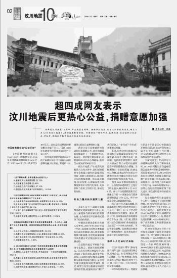 超四成網(wǎng)友表示汶川地震后更熱心公益,捐贈意愿加強(qiáng)