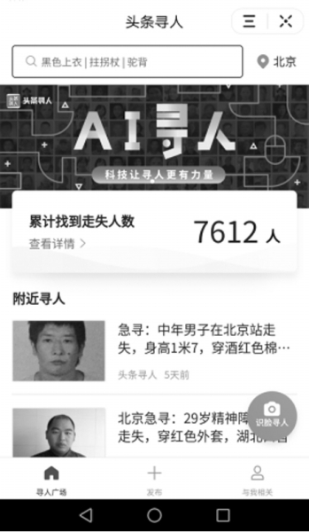 2018年11月17日,頭條尋人正式推出“識(shí)臉尋人”功能