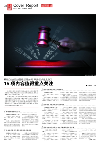 1月,民政部發(fā)布《關于大力培育發(fā)展社區(qū)社會組織的意見》,提出力爭到2020年,實現(xiàn)城市社區(qū)平均擁有不少于10個社區(qū)社會組織,農(nóng)村社區(qū)平均擁有不少于5個社區(qū)社會組織。4月-12月,民政部聯(lián)合公安部開展集中打擊整治非法社會組織專項行動。8月,民政部官網(wǎng)公布了《關于<社會組織登記管理條例(草案征求意見稿)>公開征求意見的通知》。既積極促進,又嚴格管理,社會組織走上規(guī)范發(fā)展之路。 1. 我國社區(qū)社會組織迎來最佳發(fā)展時機 2018年1月,民政部發(fā)布《關于大力培育發(fā)展社區(qū)社會組織的意見》?!兑庖姟诽岢隽幍?020年,社區(qū)社會組織培育發(fā)展初見成效,實現(xiàn)城市社區(qū)平均擁有不少于10個社區(qū)社會組織,農(nóng)村社區(qū)平均擁有不少于5個社區(qū)社會組織。再過5到10年,社區(qū)社會組織管理制度更加健全,支持措施更加完備,整體發(fā)展更加有序,作用發(fā)揮更加明顯,成為創(chuàng)新基層社會治理的有力支撐。 《意見》明確社區(qū)社會組織是由社區(qū)居民發(fā)起成立,在城鄉(xiāng)社區(qū)開展為民服務、公益慈善、鄰里互助、文體娛樂和農(nóng)村生產(chǎn)技術服務等活動的社會組織。 《意見》強調(diào)社區(qū)社會組織要在以下四個方面發(fā)揮積極作用: 一是提供社區(qū)服務。支持社區(qū)社會組織承接社區(qū)公共服務項目。二是擴大居民參與。發(fā)揮社區(qū)社會組織扎根社區(qū)、貼近群眾的優(yōu)勢,廣泛動員社區(qū)居民參與社區(qū)公共事務和公益事業(yè)。三是培育社區(qū)文化。發(fā)揮社區(qū)社會組織在完善社區(qū)公共文化服務體系中的積極作用,豐富群眾性文化活動,提升社區(qū)居民生活品質(zhì)。四是促進社區(qū)和諧。發(fā)揮社區(qū)社會組織在源頭治理方面的積極作用,協(xié)助提升社區(qū)矛盾預防化解能力。 2. 把社團中的“李鬼”打回原形 近年來,隨著社會組織公信力、影響力的不斷提升,一些不法分子也開始打著“中國”“全國”“中華”“世界”等名義,自稱“協(xié)會”“學會”“聯(lián)合會”“基金會”“中心”等,有的甚至假借服務國家戰(zhàn)略之名招搖撞騙,損害了廣大社會公眾的利益。 為加大非法社會組織的打擊力度,民政部門不斷暢通投訴舉報渠道,發(fā)動社會力量提供線索和證據(jù),有效收集了大量非法社會組織的活動信息。 針對線索,民政部門安排嚴肅查處。對涉嫌為非法社會組織但查處線索不足的,形成名單予以公布,向社會發(fā)出警示并征集有關線索信息。據(jù)介紹,名單的公布有效擠壓了非法社會組織的活動空間,一些組織主動與民政部門聯(lián)系,表明解散;還有一些組織經(jīng)社會公眾進一步補充線索,被予取締或勸散。 民政部還與公安部聯(lián)手,自2018年4月1日至12月31日,在全國范圍內(nèi)進行集中整治,重點對利用“一帶一路”建設“軍民融合”“精準扶貧”等國家戰(zhàn)略名義騙錢斂財和冠以“中國”“中華”“國際”等字樣開展活動的非法社會組織予以打擊整治,同時探索建立非法社會組織責任人“黑名單”。 一手抓集中打擊,一手抓制度建設。今年8月,民政部公布《社會組織登記管理條例(草案)》向社會公開征求意見。征求意見稿進一步細化了監(jiān)督管理和法律責任的相關內(nèi)容,豐富了有關查處手段,規(guī)定了未經(jīng)登記擅自以社會組織名義進行活動等情況的法律責任。 3. 社會組織登記管理立法征求意見 8月3日晚間,民政部發(fā)布通知就《社會組織登記管理條例(草案征求意見稿)》向社會各界征求意見,意見反饋截止時間為2018年9月1日。草案征求意見稿發(fā)布后迅速引起行業(yè)關注,多場研討會在各地召開,各界紛紛提出了意見。 在登記管理方面,社會組織領域原來執(zhí)行的是《基金會管理條例》、《社會團體登記管理條例》、《民辦非企業(yè)單位登記管理暫行條例》。 草案征求意見稿明確,社會組織,包括社會團體、基金會、社會服務機構(gòu)。 草案征求意見稿強調(diào),社會組織不得從事營利性經(jīng)營活動。在社會組織中,根據(jù)中國共產(chǎn)黨章程及有關規(guī)定,建立中國共產(chǎn)黨的組織并開展活動。社會組織應當為中國共產(chǎn)黨組織的活動提供必要條件。 基金會方面,基金會由省級以上人民政府的登記管理機關負責登記管理。設立基金會,注冊資金不得低于800萬元人民幣,且為到賬貨幣資金。在國務院的登記管理機關登記的基金會,應當以資助慈善組織和其他組織開展公益慈善活動為主要業(yè)務范圍,且發(fā)起人在有關領域具有全國范圍的廣泛認知度和影響力,注冊資金不得低于6000萬元人民幣。 登記管理機關對涉嫌違反本條例的行為進行查處,可以采取下列措施: (一)約談社會組織負責人; (二)進入社會組織的住所、活動場所進行現(xiàn)場檢查; (三)詢問與被調(diào)查事件有關的單位和個人,要求其對與被調(diào)查事件有關的事項作出說明; (四)查閱、復制與被調(diào)查事件有關的文件、資料; (五)查詢被調(diào)查社會團體、社會服務機構(gòu)的銀行賬戶或者被調(diào)查基金會的金融賬戶。 擬采取前款第五項規(guī)定措施的,須經(jīng)登記管理機關負責人批準。其中,查詢被調(diào)查基金會