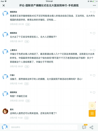 ■ 本報記者 張龍蛟 3月20日,國聯資產捐贈儀式在北京大學國家發(fā)展研究院舉行。此次捐贈儀式的主要內容是表彰北大國發(fā)院金融碩士校友、EMBA2011級校友、國聯資產總裁王巖代表國聯資產向北大捐贈2000萬元人民幣。 綜合教育領域多年的捐贈統計數據來看,2000萬元的捐贈額并不十分突出,但上述捐贈報道經其他媒體發(fā)出后沒多久卻引來不少網友評論,且全部是“負評”。 此次捐贈中網友們控訴的易通貸是什么,易通貸事件的背后反映了什么問題,此類資金為何會牽涉公益,接受捐贈時應如何避免卷入此類事件?這一系列問題的源頭都要從近年來頻繁“爆雷”的P2P網貸說起。 什么是“P2P爆雷”? 所謂“P2P網貸”,指的是個人對個人的網絡借貸,其典型模式為:網絡信貸公司提供平臺,由借貸雙方自由競價,撮合成交。資金借出人獲取利息收益,并承擔風險;資金借入人到期償還本金,網絡信貸公司收取中介服務費。 而從2018年以來,P2P平臺相繼出事,“爆雷”一詞頻繁出現在互聯網上,意指P2P平臺因為逾期兌付或經營不善問題,未能償付投資人本金利息,而出現的平臺停業(yè)、清盤、法人跑路、平臺失聯、倒閉等問題。 據“新華網思客”2018年7月13日報道,僅半個月內,就有超過40家P2P平臺相繼“爆雷”,涉及資金超過1200億元。進入2019年,P2P平臺“爆雷”事件仍時有發(fā)生。譬如,據有關媒體報道,3月28日就爆出P2P頭部平臺團貸網實控人唐軍、張林投案自首,警方以涉嫌非法吸收公眾存款立案偵查。 P2P作為2006年才傳入國內,2011年方迎來快速發(fā)展期的金融創(chuàng)新模式代表,近年來為何“爆雷”不止呢?綜合梳理多方分析發(fā)現,P2P平臺“爆雷”的原因有很多,其中就包括純詐騙平臺跑路、因擠兌或壞賬倒閉、因自身合規(guī)性經不住檢查或平臺方經營不善而出問題等多方面的原因。 P2P公司熱衷公益慈善 梳理P2P平臺的業(yè)務,不難發(fā)現,不少P2P相關公司與其責任人都熱衷于公益慈善事業(yè)。除此次備受質疑的P2P易通貸法定代表人、國聯資產總裁王巖代表國聯資產向北大捐贈2000萬元一事之外,另據《中國基金報》報道,2016年2月成立團貸網的唐軍,早在2016年10月愛佑慈善基金會舉辦的年度慈善晚宴上,就捐出5200萬元善款支持愛佑慈善基金會。 此外,擁有P2P業(yè)務“宜人貸”的宜信在2009年就推出助農公益理財平臺“宜農貸”,通過宜農貸,資金出借人可以將資金出借給貧困地區(qū)的農村借款人,支持他們發(fā)展生產、改善生活。 2018年7月因項目逾期、實際控制人失聯而“爆雷”的P2P平臺禮德財富自2014年開始就攜手揭陽市大學生發(fā)展基金會發(fā)起公益眾籌助學項目,助力貧困大學生。 “爆雷”會否影響相關公益項目? P2P平臺“爆雷”事件的頻發(fā),也在一定程度上也給和P2P平臺相關的公益慈善項目或活動帶來了影響。王巖代表國聯資產向北大捐贈2000萬元而遭到P2P平臺易通貸相關網友負評一事僅是其中一例。 據了解,易通貸全稱是北京易通貸金融信息服務有限公司,是一家網絡借貸信息中介服務平臺,屬于君石控股集團旗下公司,為出借人群和中小企業(yè)提供網絡借貸信息中介服務。 據天眼查顯示,北京易通貸金融信息服務有限公司和國聯資產管理有限公司的法定代表人和大股東都是王巖。 易通貸是目前國內P2P網貸公司大軍中的一個縮影。據易通貸官網介紹,2011年成立的易通貸,在2013年正式上線交易,并在之后榮獲了包括“2014年度最佳P2P平臺“獎、2015年“互聯網金融安全領袖”獎、“2017企業(yè)社會責任(CSR)優(yōu)秀企業(yè)獎”等在內的多個獎項,并于2017年5月舉辦了“愛心無限 通惠天下”易通貸關注孤獨癥兒童大型公益活動,于2017年10月舉辦關注流動兒童公益活動。值得注意的是,易通貸官網自稱接入了中國電子商務協會反欺詐系統。然而在2018年12月20日,民政部官網發(fā)出公告稱,對中國電子商務協會作出撤銷登記處罰,同時將中國電子商務協會列入社會組織嚴重違法失信名單。 回顧網友“負評”王巖代表國聯資產向北大捐贈一事的起因,可以發(fā)現,2018年8月易通貸平臺出現提現困難,隨后,8月30日,易通貸發(fā)布《關于易通貸近期經營情況的說明》承諾,公司將在12月26日恢復正常的提現工作。然而到截止日期后,平臺仍沒能如投資人所愿可以正常提現。因此,出現了2018年12月27日,易通貸總部遭遇投資人上門維權事件。2019年1月30日,因投資人報案,易通貸平臺已被公安經偵部門介入調查。 據網貸之家報道,易通貸在中國互金協會信披系統上披露的數據顯示,截至2019年2月28日,平臺借貸余額為14.58億元,逾期金額高達17.83億元,金額逾期率高達119.55%。2019年3月26日,易通貸官網發(fā)布《關于2019年3月現金兌付的公告》稱,將于3月31日前實現首期普惠式的現金兌付,總金額為1000萬元。公告預計,4、5、6月,平臺每月均將現金兌付不低于1000萬元,平臺將持續(xù)實現兌付。3月27日,易通貸官網發(fā)布補充公告稱,此次現金兌付平均每人兌付金額為232元,需出借人自行在平臺申請對應金額的提現方能實現。 受捐方如何避免卷入類似事件 受捐方為捐贈者舉辦公益捐贈儀式本意是弘揚愛心和社會正能量,號召人人向善,但國聯資產捐贈儀式的新聞卻被看到的網友“負評”,甚至是質疑、諷刺,相關新聞也隨著這些“負評”再度擴散傳播