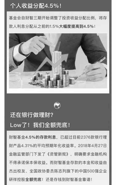 ■ 本報(bào)記者 文梅 6月19日,《公益時(shí)報(bào)》發(fā)表《“公益捐存”——這個(gè)籌款“套路”不一般》一文,報(bào)道顯示,深圳市遼建友教育基金會(huì)(以下簡(jiǎn)稱‘遼建友基金會(huì)’)設(shè)立“財(cái)智投資基金”,以“公益捐存”的方式,承諾預(yù)期回報(bào),面向沈陽建筑大學(xué)校友群體公開募捐。 該報(bào)道引起業(yè)界廣泛關(guān)注?!豆鏁r(shí)報(bào)》獲悉,報(bào)道刊發(fā)后,民政部執(zhí)法處已很快將此事交由深圳民政主管部門調(diào)查處理。 6月24日上午,《公益時(shí)報(bào)》記者電話采訪深圳市民政局執(zhí)法監(jiān)督處工作人員,了解目前進(jìn)展情況。這位工作人員告訴《公益時(shí)報(bào)》記者,深圳市民政局已于6月21日正式接到民政部有關(guān)部門就此事的通知,因22、23日適逢周末雙休,便于24日(周一)一早派工作人員到遼建友基金會(huì)啟動(dòng)相關(guān)調(diào)查。她表示,深圳民政局執(zhí)法部門會(huì)嚴(yán)格按照相關(guān)執(zhí)法流程推進(jìn)此事,無論調(diào)查結(jié)果如何,一定會(huì)及時(shí)通過公開渠道予以公示。 根據(jù)此前的報(bào)道,此事由網(wǎng)友“簡(jiǎn)出橋”偶然發(fā)現(xiàn),并向《公益時(shí)報(bào)》記者反饋。他認(rèn)為,遼建友基金會(huì)所謂的“公益捐存”籌款模式與不久前被媒體報(bào)道涉嫌非法吸儲(chǔ)的河南省黃河文化基金會(huì)運(yùn)作形態(tài)頗為形似。 簡(jiǎn)出橋告訴《公益時(shí)報(bào)》記者,該基金會(huì)在微信公眾號(hào)對(duì)其運(yùn)作的“財(cái)智投資基金”公益捐存項(xiàng)目描述如下——基金會(huì)按照章程使用籌款項(xiàng)及其增值收益,并向捐贈(zèng)人支付按中國人民銀行同期人民幣存款基準(zhǔn)利率計(jì)算的存款利息,在投資周期結(jié)束后,捐贈(zèng)人可以按照自己的意愿全額收回捐贈(zèng)存款(捐存)的本金和存款利息。對(duì)照了之前媒體報(bào)道的河南省黃河文化基金會(huì)項(xiàng)目運(yùn)作模式之后,簡(jiǎn)出橋認(rèn)為,遼建友基金會(huì)發(fā)起的“公益捐存”項(xiàng)目實(shí)質(zhì)與其相同,已經(jīng)涉嫌違法。 心生質(zhì)疑的簡(jiǎn)出橋嘗試多種網(wǎng)絡(luò)工具對(duì)這家基金會(huì)所有的相關(guān)線索進(jìn)行了整體梳理,最終在中國社會(huì)組織動(dòng)態(tài)找到了該基金會(huì)的基礎(chǔ)登記信息,但在其官網(wǎng)、微信公眾號(hào)以及慈善中國等渠道都沒有找到其年檢年報(bào)等方面的任何信息。同時(shí)令他有些吃驚的是,在深圳市民政主管部門披露的獲得2018年度稅前扣除資格的社會(huì)組織名單里,遼建友基金會(huì)的名字也位列其中?!?/p> “一家正常運(yùn)作的基金會(huì),勢(shì)必要有常規(guī)的年檢、年報(bào)信息。遼建友基金會(huì)從2015年11月拿到登記證書到現(xiàn)在快四年了,任何一個(gè)年度的年檢年報(bào)都查不到,那至少說明一個(gè)問題:這家基金會(huì)的運(yùn)營是極其不公開、不透明的。”簡(jiǎn)出橋說。 北京致誠社會(huì)組織矛盾調(diào)處與研究中心執(zhí)行主任、公益律師何國科審閱了有關(guān)這個(gè)項(xiàng)目的公開材料后,從專業(yè)角度做出了解讀。 何國科說:“從目前看到的材料來說,遼建友基金會(huì)推出的‘公益捐存’及其運(yùn)作模式屬于典型的‘銀行吸儲(chǔ)’模式,而非一種單純的慈善公益活動(dòng)。投入人,既是捐贈(zèng)人,又是投資人,基金會(huì)給‘捐贈(zèng)人’承諾返本付息,又開具捐贈(zèng)票據(jù),這樣的操作,跟《慈善法》關(guān)于慈善捐贈(zèng)無償?shù)囊?guī)定直接相違背。此外,基金會(huì)也不能違反國家金融監(jiān)管的規(guī)定,這樣的操作涉嫌非法集資?!?/p> 就簡(jiǎn)出橋提出的“查不到該基金會(huì)年檢年報(bào)等公開信息”等質(zhì)疑,何國科表示,僅就表象而言,該基金會(huì)的運(yùn)行在透明公開等社會(huì)公示方面做得顯然很欠缺,可謂肉眼看得到的“硬傷”,至于是否通過年檢年報(bào),相信有關(guān)管理部門應(yīng)該是心中有數(shù)的,否則也不可能拿到2018年度稅前扣除資格,而且還進(jìn)行了公示。 “如果了解一下河南省黃河文化基金會(huì)的運(yùn)作模式你就會(huì)發(fā)現(xiàn),該基金會(huì)的操作手法與遼建友基金會(huì)的情況本質(zhì)上是一致的,唯一不同的是黃河文化基金會(huì)承諾給予捐贈(zèng)人高額的收益,遼建友基金會(huì)承諾給予銀行同等利息。但這也不能說明遼建友基金會(huì)在其中就沒有獲得高收益。假如銀行利息是三到五個(gè)點(diǎn),一些基金、信托等理財(cái)類收益則遠(yuǎn)遠(yuǎn)高于這個(gè)基數(shù),有可能達(dá)到九到十個(gè)點(diǎn)。即便按照承諾給予捐贈(zèng)人返點(diǎn),依然有不小的利潤空間,那這家基金會(huì)在里面可能得到的回報(bào)就顯而易見了,當(dāng)然基金會(huì)是不是如其宣傳那樣將收益用于慈善目的,這個(gè)就要看更多項(xiàng)目執(zhí)行的材料了?!焙螄普f。 根據(jù)遼建友基金會(huì)公布的相關(guān)資料顯示,遼建友教育基金會(huì)發(fā)起人陳志列承諾以其名下的研祥高科技控股集團(tuán)為基金會(huì)存款的本金和不低于11.2%的投資年收益兜底擔(dān)保,并將不低于8%的超額收益撥備捐贈(zèng)