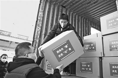 這段時(shí)間,河北部分地區(qū)出現(xiàn)的疫情牽動(dòng)著全國(guó)人民的心。圖為1月17日,工作人員正在搬運(yùn)來(lái)自武漢的防疫物資。當(dāng)日,湖北省疫情防控指揮部籌集的移動(dòng)核酸檢測(cè)車(chē)、口罩等價(jià)值約1000萬(wàn)元防疫物資抵達(dá)石家莊。