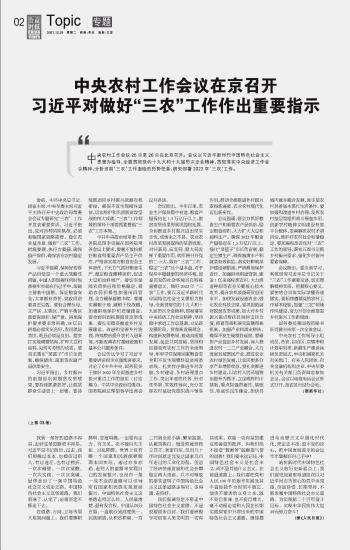 中央農(nóng)村工作會議在京召開 習(xí)近平對做好“三農(nóng)”工作作出重要指示