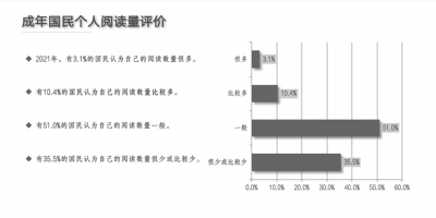 ■ 本報記者 皮磊 4月23日是第27個世界讀書日。在當(dāng)天舉行的首屆全民閱讀大會上,中國新聞出版研究院發(fā)布了第十九次全國國民閱讀調(diào)查結(jié)果。該調(diào)查自1999年開展起,如一年一度的國民閱讀‘體檢報告’,綜合反映著我國國民閱讀水平。 77.4%的成年國民 進(jìn)行過手機(jī)閱讀 調(diào)查結(jié)果顯示,2021年,,較2020年的59.5%增長了0.2個百分點(diǎn);報紙閱讀率為24.6%,較2020年的25.5%下降了0.9個百分點(diǎn);期刊閱讀率為18.4%,較2020年的18.7%下降了0.3個百分點(diǎn);數(shù)字化閱讀方式(網(wǎng)絡(luò)在線閱讀、手機(jī)閱讀、電子閱讀器閱讀、Pad閱讀等)的接觸率為79.6%,較2020年的79.4%增長了0.2個百分點(diǎn)。 進(jìn)一步對各類數(shù)字化閱讀載體的接觸情況進(jìn)行分析發(fā)現(xiàn),2021年有77.4%的成年國民進(jìn)行過手機(jī)閱讀,較2020年的76.7%增長了0.7個百分點(diǎn);71.6%的成年國民進(jìn)行過網(wǎng)絡(luò)在線閱讀,較2020年的71.5%增長了0.1個百分點(diǎn);27.3%的成年國民在電子閱讀器上閱讀,與2020年(27.2%)基本持平;21.7%的成年國民使用Pad(平板電腦)進(jìn)行數(shù)字化閱讀,與2020年(21.8%)基本持平。 從數(shù)字化閱讀方式的人群分布特征來看,越來越多的中青年群體成為數(shù)字化閱讀的主體。具體來看,在我國成年數(shù)字化閱讀方式接觸者中,18—59周歲人群占92.8%,60周歲及以上人群占7.2%。 紙質(zhì)圖書的閱讀優(yōu)勢 仍然明顯 從成年國民對各類出版物閱讀量的考察看,2021年我國成年國民人均紙質(zhì)圖書閱讀量為4.76本,高于2020年的4.70本。人均電子書閱讀量為3.30本,高于2020年的3.29本。紙質(zhì)報紙的人均閱讀量為15.13期(份),低于2020年的15.36期(份)。紙質(zhì)期刊的人均閱讀量為1.90期(份),低于2020年的1.94期(份)。 2021年我國成年國民中,有11.9%的國民年均閱讀10本及以上紙質(zhì)圖書,較2020年的11.6%增長了0.3個百分點(diǎn);有8.7%的國民年均閱讀10本及以上電子書,較2020年的8.5%增長了0.2個百分點(diǎn)。 通過對我國城鄉(xiāng)成年居民圖書閱讀量的考察發(fā)現(xiàn),2021年,我國城鎮(zhèn)居民的紙質(zhì)圖書閱讀量為5.58本,較2020年的5.54本多0.04本;農(nóng)村居民的紙質(zhì)圖書閱讀量為3.76本,高于2020年的3.75本。 “視頻講書” 成為新的閱讀選擇 從成年國民傾向的閱讀形式來看,2021年,有45.6%的成年國民傾向于“拿一本紙質(zhì)圖書閱讀”,比2020年的43.4%上升了2.2個百分點(diǎn);有30.5%的成年國民傾向于“在手機(jī)上閱讀”;有8.4%的成年國民傾向于“在電子閱讀器上閱讀”;有6.6%的成年國民傾向于“網(wǎng)絡(luò)在線閱讀”;有7.4%的成年國民傾向于“聽書”;有1.5%的成年國民傾向于“視頻講書”。 從成年國民對個人紙質(zhì)內(nèi)容和數(shù)字內(nèi)容的閱讀量變化情況的反饋來看,與上年相比,有12.2%的國民表示2021年“增加了數(shù)字內(nèi)容的閱讀”,但有8.9%的國民表示2021年“減少了數(shù)字內(nèi)容的閱讀”;有11.6%的國民表示2021年“增加了紙質(zhì)內(nèi)容的閱讀”,但有10.4%的國民表示2021年“減少了紙質(zhì)內(nèi)容的閱讀”;還有50.1%的國民認(rèn)為2021年個人閱讀量沒有變化。 調(diào)查顯示,在傳統(tǒng)紙質(zhì)媒介中,2021年我國成年國民人均每天讀書時間最長,為21.05分鐘,比2020年的20.04分鐘增加了1.01分鐘;人均每天讀報時長為5.22分鐘,少于2020年的5.71分鐘;人均每天閱讀期刊時長為2.96分鐘,少于2020年的3.25分鐘。 在數(shù)字化媒介中,成年國民人均每天手機(jī)接觸時間最長。2021年,我國成年國民人均每天手機(jī)接觸時長為101.12分鐘,比2020年的100.75分鐘增加了0.37分鐘;人均每天互聯(lián)網(wǎng)接觸時長為68.42分鐘,比2020年的67.82分鐘增加了0.6分鐘;人均每天電子閱讀器閱讀時長為11.78分鐘,較2020年的11.44分鐘增加了0.34分鐘;人均每天接觸Pad(平板電腦)的時長為9.82分鐘,較2020年的9.73分鐘增加了0.09分鐘。 全民閱讀 品牌活動效應(yīng)日漸凸顯 調(diào)查數(shù)據(jù)顯示,我國成年國民對閱讀活動的訴求較高。2021年,有80.1%的成年國民認(rèn)為當(dāng)?shù)赜嘘P(guān)部門應(yīng)當(dāng)舉辦讀書活動或讀書節(jié)。 2021年,我國成年國民對全民閱讀品牌活動的知曉率達(dá)73.1%。其中,“本地城市讀書節(jié)”和“書展書市”的知曉率最高,選擇比例均為28.8%;“機(jī)關(guān)企業(yè)/校園讀書活動”選擇比例為28.5%;“本地讀書會”“城市讀書大講堂”的知曉率選擇比例分別為26.9%和23.2%。 2021年,我國成年國民對全民閱讀品牌活動的參與度達(dá)65.4%。其中,“本地城市讀書節(jié)”的參與度為25.5%;“機(jī)關(guān)企業(yè)/校園讀書活動”的參與度位列其后,為25.3%;“本地讀書會”的參與度為24.1%;“書展書市”的參與度為23.6%;“城市讀書大講堂”的參與度為19.1%。 2021年,我國城鎮(zhèn)成年居民對居住的街道附近有公共圖書館、社區(qū)閱覽室/社區(qū)書屋/城市書房、報刊欄等至少一種公共閱讀服務(wù)設(shè)施的知曉率為51.7%。其中,對公共圖書館的知曉率為30.3%;對報刊欄的知曉率為26.5%;對社區(qū)閱覽室/社區(qū)書屋/城市書房的知曉率為25.3%。 0—17周歲未成年人 閱讀向好 調(diào)查顯示,從未成年人的圖書閱讀率來看,2021年0—8周歲兒童圖書閱讀率為72.1%,較2020年的71.4%提高了0.7個百分點(diǎn);9—13周歲