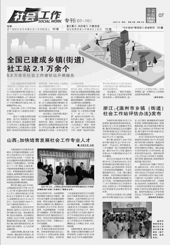 全國已建成鄉(xiāng)鎮(zhèn)(街道)社工站2.1萬余個