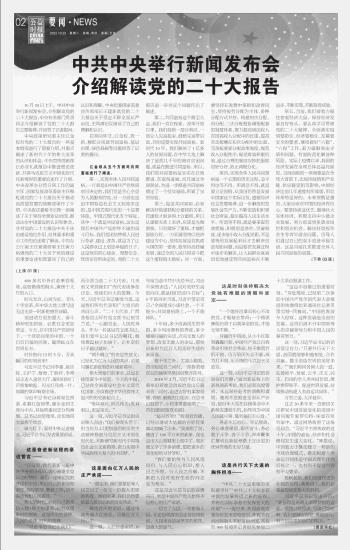中共中央舉行新聞發(fā)布會(huì)介紹解讀黨的二十大報(bào)告