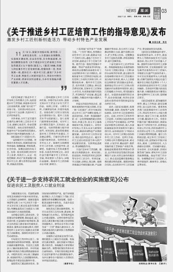 《關(guān)于推進(jìn)鄉(xiāng)村工匠培育工作的指導(dǎo)意見》發(fā)布