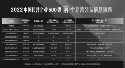 ■ 本報(bào)記者 張明敏 黨的二十大報(bào)告指出,引導(dǎo)、支持有意愿有能力的企業(yè)、社會(huì)組織和個(gè)人積極參與公益慈善事業(yè)。 今年9月,全國(guó)工商聯(lián)發(fā)布的“2022中國(guó)民營(yíng)企業(yè)500強(qiáng)”調(diào)研報(bào)告顯示,500強(qiáng)企業(yè)營(yíng)業(yè)收入總額為38.32萬億元,增長(zhǎng)9.13%。盡管企業(yè)經(jīng)營(yíng)指標(biāo)有所波動(dòng),但在鞏固脫貧成果改善民生保障、促進(jìn)產(chǎn)業(yè)興旺帶動(dòng)農(nóng)民增收方面,民營(yíng)企業(yè)表現(xiàn)仍舊十分顯著。 記者通過對(duì)榜單排名前10的企業(yè)進(jìn)行梳理發(fā)現(xiàn),10家企業(yè)分別來自互聯(lián)網(wǎng)、化工能源、房地產(chǎn)、有色金屬、電子設(shè)備制造等行業(yè)。在踐行社會(huì)責(zé)任方面,七家企業(yè)設(shè)有基金會(huì),三家企業(yè)公益平臺(tái)入選民政部首批互聯(lián)網(wǎng)公開募捐信息平臺(tái)。 為更好地展現(xiàn)民營(yíng)企業(yè)履行社會(huì)責(zé)任面貌,呈現(xiàn)覆蓋面廣、方式多元、可供參照的民企公益案例,《公益時(shí)報(bào)》特推出《中國(guó)民營(yíng)企業(yè)履責(zé)進(jìn)行時(shí)》專題策劃,從企業(yè)參與慈善途徑及方向、捐贈(zèng)額度、公益項(xiàng)目、可持續(xù)發(fā)展等角度深入剖析,同時(shí)通過相關(guān)采訪展現(xiàn)民營(yíng)企業(yè)履責(zé)現(xiàn)狀及特點(diǎn),運(yùn)用榜樣力量帶動(dòng)更多民營(yíng)企業(yè)專業(yè)、規(guī)范、高效履行企業(yè)社會(huì)責(zé)任。 榜單前十中七家設(shè)有基金會(huì) 三家入選互聯(lián)網(wǎng)公開募捐信息平臺(tái) 記者通過檢索10家企業(yè)官網(wǎng)及中國(guó)社會(huì)組織政務(wù)服務(wù)平臺(tái)發(fā)現(xiàn),“2022中國(guó)民營(yíng)企業(yè)500強(qiáng)”前十名有七家設(shè)有企業(yè)基金會(huì),三家入選首批互聯(lián)網(wǎng)公開募捐信息平臺(tái)。具體包括,京東集團(tuán)設(shè)立的京東公益基金會(huì)、阿里巴巴集團(tuán)設(shè)立的阿里巴巴公益基金會(huì)、恒力集團(tuán)設(shè)立的江蘇恒力慈善基金會(huì)、騰訊集團(tuán)設(shè)立的騰訊公益慈善基金會(huì)、碧桂園設(shè)立的廣東省國(guó)強(qiáng)公益基金會(huì)、聯(lián)想控股設(shè)立的北京聯(lián)想公益基金會(huì)以及萬科設(shè)立的萬科公益基金會(huì)。 其中,騰訊公益、阿里巴巴公益及京東公益平臺(tái)于2016年入選民政部首批互聯(lián)網(wǎng)公開募捐信息平臺(tái)。 數(shù)據(jù)顯示,截至2022年5月18日,騰訊公益平臺(tái)累計(jì)籌款超過180億元,用戶捐款超過6億人次,幫助逾11萬個(gè)公益項(xiàng)目籌集資金。 2021年全年,阿里巴巴公益平臺(tái)在線公益項(xiàng)目達(dá)2506個(gè),為慈善組織募捐超過5億元,約7.4億人次參與捐贈(zèng)。 京東公益平臺(tái)以物愛相連物資募捐系統(tǒng)、暖東公益資金募捐系統(tǒng)等為依托,倡導(dǎo)人人公益。其中,物愛相連結(jié)合京東商品供應(yīng)鏈、物流供應(yīng)鏈優(yōu)勢(shì),可實(shí)現(xiàn)用戶一鍵捐贈(zèng)、物資直達(dá)受助對(duì)象的效果。截至目前,該平臺(tái)累計(jì)募集物資約為432萬件,累計(jì)約296萬人次參與募捐。 企業(yè)營(yíng)收持續(xù)增長(zhǎng) 五家公益支出過億 記者注意到,“2022中國(guó)民營(yíng)企業(yè)500強(qiáng)”榜單共有8602家年?duì)I業(yè)收入5億元以上的企業(yè)參加評(píng)選,入圍門檻達(dá)263.67億元,比上年增加28.66億元。入圍門檻提高的同時(shí),企業(yè)基金會(huì)捐贈(zèng)規(guī)模也大幅提升。 記者通過對(duì)比上述七家企業(yè)基金會(huì)2021年年報(bào)發(fā)現(xiàn),年度支出過億的基金會(huì)有五家,分別為騰訊公益慈善基金會(huì)、廣東省國(guó)強(qiáng)公益基金會(huì)、阿里巴巴公益基金會(huì)、京東公益基金會(huì)、萬科公益基金會(huì)。其中,有兩家年度支出超10億元,為騰訊公益慈善基金會(huì)和廣東省國(guó)強(qiáng)公益基金會(huì)。 數(shù)據(jù)顯示,2021年,騰訊控股有限公司營(yíng)收56,011,800萬元,騰訊公益慈善基金會(huì)接受捐贈(zèng)收入1,500,430,200.13元,公益支出1,459,577,300.39元。其中最大一筆支出用于支持科技發(fā)展——“科學(xué)探索獎(jiǎng)”,金額達(dá)109,650,000.00元,占到總支出的7.06%。 2021年,碧桂園控股有限公司營(yíng)收達(dá)52,306,400萬元,國(guó)強(qiáng)公益基金會(huì)捐贈(zèng)收入1,270,805,709.26元,公益支出1,123,876,589.15元,占本年度支出比例為99.77%;重大公益項(xiàng)目支出中,最大一筆為向廣東省扶貧基金會(huì)捐贈(zèng)的241,987,300.00元。 2021年,阿里巴巴(中國(guó))有限公司營(yíng)收83,640,500萬元。阿里巴巴公益基金會(huì)捐贈(zèng)收入550,000,000.00元,公益支出393,513,221.88元。同年,阿里巴巴公益基金會(huì)重大公益慈善項(xiàng)目大額支付對(duì)象為向河南省慈善總會(huì)捐贈(zèng)1億元援助水災(zāi)、向中國(guó)互聯(lián)網(wǎng)發(fā)展基金會(huì)“中國(guó)正能量網(wǎng)絡(luò)傳播項(xiàng)目”捐贈(zèng)1億元支持網(wǎng)絡(luò)文化。這兩項(xiàng)大額支出共計(jì)占2021年該基金會(huì)支出的50.82%。 2021年,京東集團(tuán)營(yíng)收為95,159,200萬元。北京京東公益基金會(huì)收入199,