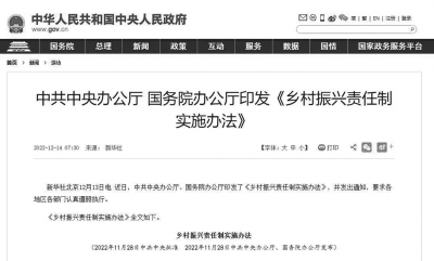 ■ 本報記者 皮磊 近日,中共中央辦公廳、國務(wù)院辦公廳印發(fā)了《鄉(xiāng)村振興責任制實施辦法》(以下簡稱《辦法》),并發(fā)出通知,要求各地區(qū)各部門認真遵照執(zhí)行。 《辦法》指出,實行鄉(xiāng)村振興責任制,堅持以習近平新時代中國特色社會主義思想為指導,增強“四個意識”、堅定“四個自信”、做到“兩個維護”,實行中央統(tǒng)籌、省負總責、市縣鄉(xiāng)抓落實的鄉(xiāng)村振興工作機制,構(gòu)建職責清晰、各負其責、合力推進的鄉(xiāng)村振興責任體系,舉全黨全社會之力全面推進鄉(xiāng)村振興,加快農(nóng)業(yè)農(nóng)村現(xiàn)代化。 《辦法》強調(diào),堅持黨對農(nóng)村工作的全面領(lǐng)導,健全黨委統(tǒng)一領(lǐng)導、政府負責、黨委農(nóng)村工作部門統(tǒng)籌協(xié)調(diào)的農(nóng)村工作領(lǐng)導體制,省市縣鄉(xiāng)村五級書記抓鄉(xiāng)村振興。 在黨中央領(lǐng)導下,中央農(nóng)村工作領(lǐng)導小組負責鞏固拓展脫貧攻堅成果、全面推進鄉(xiāng)村振興的牽頭抓總、統(tǒng)籌協(xié)調(diào),推動建立健全鄉(xiāng)村振興責任落實、組織推動、社會動員、要素保障、考核評價、工作報告、監(jiān)督檢查等機制并抓好組織實施。 《辦法》明確了中央和國家機關(guān)有關(guān)部門鄉(xiāng)村振興責任。其中提到,鞏固拓展脫貧攻堅成果,完善并組織實施配套政策,健全并推進實施防止返貧動態(tài)監(jiān)測和幫扶機制,重點幫扶支持國家鄉(xiāng)村振興重點幫扶縣、易地搬遷集中安置點等重點區(qū)域,持續(xù)做好中央單位定點幫扶工作,讓脫貧攻堅成果更加扎實、更可持續(xù)。堅持農(nóng)業(yè)農(nóng)村優(yōu)先發(fā)展,在干部配備、要素配置、資金投入、公共服務(wù)等方面對鄉(xiāng)村振興予以優(yōu)先保障,健全城鄉(xiāng)融合發(fā)展體制機制和政策體系,暢通城鄉(xiāng)要素流動。 《辦法》也明確了地方黨委和政府鄉(xiāng)村振興責任。其中提到,把鞏固拓展脫貧攻堅成果擺在突出位置,確保兜底保障水平穩(wěn)步提高,確?!叭U稀焙惋嬎踩U纤匠掷m(xù)鞏固提升,不斷縮小收入差距、發(fā)展差距,增強脫貧地區(qū)和脫貧群眾內(nèi)生發(fā)展動力,切實運行好防止返貧動態(tài)監(jiān)測和幫扶機制,守住不發(fā)生規(guī)模性返貧底線,努力讓脫貧群眾生活更上一層樓。鼓勵和引導各類人才投身鄉(xiāng)村振興,選派優(yōu)秀干部到鄉(xiāng)村振興一線崗位,大力培養(yǎng)本土人才,引導返鄉(xiāng)回鄉(xiāng)下鄉(xiāng)就業(yè)創(chuàng)業(yè)人員參與鄉(xiāng)村振興,支持專業(yè)人才通過多種方式服務(wù)鄉(xiāng)村,推動鄉(xiāng)村振興各領(lǐng)域人才規(guī)模不斷壯大、素質(zhì)穩(wěn)步提升、結(jié)構(gòu)持續(xù)優(yōu)化。 《辦法》鼓勵社會力量參與鄉(xiāng)村振興。其中明確指出,中央定點幫扶單位應(yīng)當履行幫扶責任,聚焦鞏固拓展脫貧攻堅成果和全面推進鄉(xiāng)村振興,制定年度計劃,發(fā)揮自身優(yōu)勢創(chuàng)新幫扶舉措,持續(xù)選派掛職干部和駐村第一書記,加強工作指導,督促政策落實,提高幫扶實效。 東西部協(xié)作雙方各級黨委和政府應(yīng)當堅持雙向協(xié)作、互惠互利、多方共贏,統(tǒng)籌推進教育、文化、醫(yī)療衛(wèi)生、科技等領(lǐng)域?qū)趲头龉ぷ?,深化區(qū)縣、村企、學校、醫(yī)院等結(jié)對幫扶,加強產(chǎn)業(yè)合作、資源互補、勞務(wù)對接、人才交流等,把幫扶重點轉(zhuǎn)向鞏固拓展脫貧攻堅成果和全面推進鄉(xiāng)村振興。 《辦法》還提到,工會、共青團、婦聯(lián)、科協(xié)、殘聯(lián)等群團組織應(yīng)當發(fā)揮優(yōu)勢和力量參與鄉(xiāng)村振興。企事業(yè)單位和社會組織應(yīng)當積極履行社會責任,支持鄉(xiāng)村振興。深入實施“萬企興萬村”行動,探索建立健全企業(yè)支持鄉(xiāng)村振興機制。發(fā)揮第三次分配作用,鼓勵引導各類公益慈善資金支持鄉(xiāng)村振興。鼓勵公民個人主動參與鄉(xiāng)村振興。 《辦法》最后明確了考核監(jiān)督機制及獎懲機制。 |