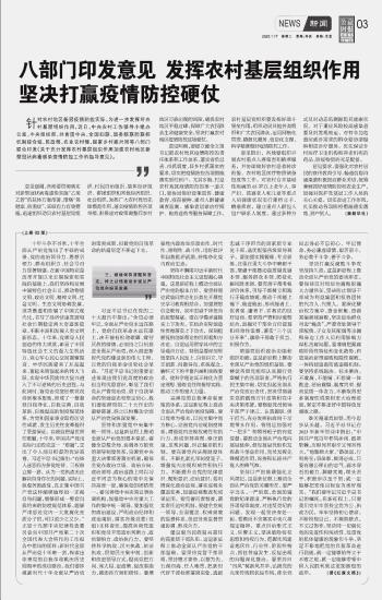 八部門(mén)印發(fā)意見(jiàn) 發(fā)揮農(nóng)村基層組織作用 堅(jiān)決打贏疫情防控硬仗