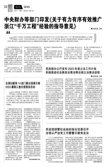 民政部辦公廳發(fā)布2023年度立法工作計劃 積極推進社會救助法等法律法規(guī)立法修法進程