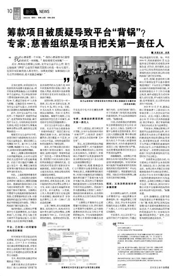 籌款項目被質(zhì)疑導致平臺“背鍋”?專家:慈善組織是項目把關第一責任人