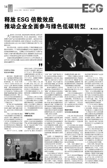 釋放ESG倍數(shù)效應(yīng) 推動(dòng)企業(yè)全面參與綠色低碳轉(zhuǎn)型