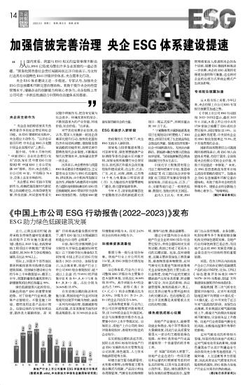 加強(qiáng)信披完善治理 央企ESG體系建設(shè)提速