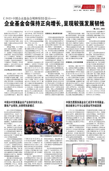 《2023中國企業(yè)基金會(huì)觀察報(bào)告》顯示—— 企業(yè)基金會(huì)保持正向增長(zhǎng),呈現(xiàn)較強(qiáng)發(fā)展韌性