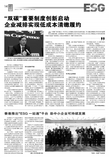 香港推出“ESG一站通”平臺 助中小企業(yè)可持續(xù)發(fā)展