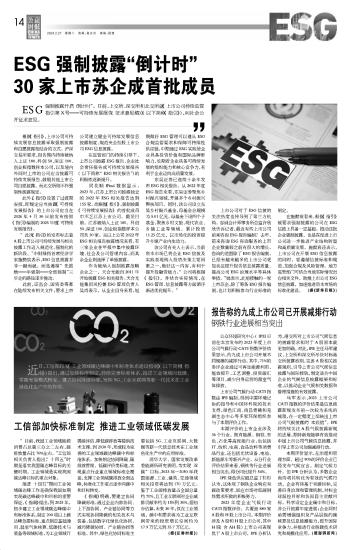 ESG強(qiáng)制披露“倒計(jì)時(shí)” 30家上市蘇企成首批成員