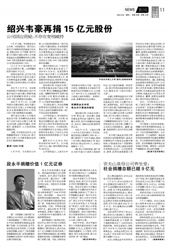 農(nóng)夫山泉母公司養(yǎng)生堂:社會(huì)捐贈(zèng)總額已超9億元