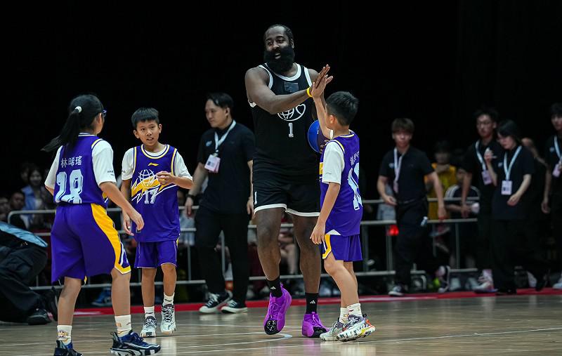 過(guò)去三天時(shí)間,籃球相關(guān)的熱搜不斷,從“姚明女兒最新身高”到“哈登巴特勒喬治合體”,再到“郭艾倫劉畊宏單挑”…… 而這些看上去跨越頗大的話(huà)題,其實(shí)都出自同一件事——姚基金慈善賽。 北京時(shí)間8月20日,位于香港的亞洲國(guó)際博覽館10號(hào)展館被改造成了一座臨時(shí)球館,超過(guò)5000名觀(guān)眾一起見(jiàn)證了2024第十二屆姚基金慈善賽的上演。 哈登、巴特勒、保羅·喬治和庫(kù)茲馬的加盟,讓這場(chǎng)比賽星光璀璨,而他們代表的國(guó)際明星隊(duì)最終以128比104戰(zhàn)勝中國(guó)明星隊(duì),但勝負(fù)分差從來(lái)不是慈善賽的重點(diǎn)。 自2007年姚明和納什首次將慈善籃球帶到中國(guó),16年12場(chǎng)比賽的背后,是姚基金希望小學(xué)籃球季為超過(guò)500萬(wàn)人次的鄉(xiāng)村地區(qū)青少年帶去了積極的影響和改變。“體育有大益處?!币γ魈寡?,“道路漫長(zhǎng),我相信只要相關(guān)各方能夠達(dá)成共識(shí),相向而行,雖遠(yuǎn)必至。” “沒(méi)想到他們是來(lái)玩兒真的” 這是姚基金慈善賽時(shí)隔7年再次來(lái)到中國(guó)香港。 上一次姚明把慈善賽帶到這座城市,恰好是香港回歸20周年。不過(guò),當(dāng)時(shí)那場(chǎng)比賽的陣容讓很多球迷失望——參賽名單公布時(shí)只有JR·史密斯一名明星球員,與賽事承辦方早期宣傳的“火箭、雷霆、馬刺隊(duì)精英悍將來(lái)港”出入很大。 好在趕來(lái)“救場(chǎng)”的文斯·卡特賣(mài)力地重現(xiàn)滑翔劈扣,JR·史密斯全力釋放自己的娛樂(lè)天賦,賈斯汀·安德森也和孩子們打成一片,讓比賽的口碑在賽后有所扭轉(zhuǎn)。 7年后重回香港,慈善賽的球員陣容又上了熱搜,但這一次,幾乎清一色是積極的評(píng)價(jià)。10次全明星和1次常規(guī)賽MVP詹姆斯·哈登、9屆全明星選手保羅·喬治、6次全明星和1次東部決賽MVP吉米·巴特勒、再加上贏(yíng)得過(guò)總冠軍的人氣球員凱爾·庫(kù)茲馬…… 由這四名球員組成的國(guó)際明星隊(duì)陣容,算得上是過(guò)去7年里,姚基金慈善賽星光最璀璨的一屆。 據(jù)記者了解,介于過(guò)往一系列國(guó)際賽事在香港舉辦時(shí)引發(fā)的爭(zhēng)議,香港方面在這次慈善賽的宣傳上比較謹(jǐn)慎,然而開(kāi)票之后,短短幾分鐘的時(shí)間,球票就被搶購(gòu)一空。 球迷們對(duì)于球星的熱情,從比賽當(dāng)天早上的嘉年華活動(dòng)就能窺見(jiàn)一斑。早上9點(diǎn)的嘉年華開(kāi)始前兩個(gè)多小時(shí),許多球迷就已經(jīng)等候在場(chǎng)館外。到了晚間的正賽,球迷們穿著球星的球衣,舉著各種橫幅,熱烈的氛圍一掃香港這幾日的陰雨綿綿。 球迷的熱情,也傳遞給了場(chǎng)上的大牌球星。比賽開(kāi)始后,他們?cè)诠シ纼啥送耆宫F(xiàn)出了正式比賽的強(qiáng)度——巴特勒先后兩次接到喬治和哈登送出的助攻,完成扣籃,引爆全場(chǎng)。 隨后,庫(kù)茲馬的連續(xù)3個(gè)三分球?qū)⒈荣惖谝还?jié)的氣氛推到高潮,而到了第二節(jié),哈登開(kāi)始接管比賽,他先是命中一記超遠(yuǎn)三分球,隨后又祭出了標(biāo)志性的后撤步三分表演。 “沒(méi)想到他們是來(lái)玩兒真的?!庇^(guān)眾席上,不少球迷都發(fā)出了這樣的驚嘆,在他們的固有印象里,慈善賽更多的是表演,“他們不僅是認(rèn)真進(jìn)攻,而且還認(rèn)真防守。” 比賽前兩節(jié),喬治一度鎖死了中國(guó)明星隊(duì)的幾位后衛(wèi),巴特勒也連續(xù)完成搶斷,而在這個(gè)夏天又長(zhǎng)了不少肉的哈登,甚至給李曉旭送上了追身大帽,并且在之后的一個(gè)回合飛出邊線(xiàn)救球,引來(lái)全場(chǎng)熱烈的掌聲。 而當(dāng)分差逐漸拉大,這些NBA球星也展現(xiàn)了一份松弛,比如喬治在完成扣籃后,會(huì)順勢(shì)跑到籃下的鏡頭前做鬼臉。這般兼顧了比賽強(qiáng)度和娛樂(lè)的比賽,讓球迷們大呼過(guò)癮。 “能夠幫助下一代進(jìn)步太棒了” 從2013年開(kāi)始,姚基金慈善賽就把比賽第三節(jié)改為了由希望小學(xué)籃球季的鄉(xiāng)村學(xué)校小球員與中外明星球員同場(chǎng)競(jìng)技。此后,明星球員們不再是這場(chǎng)比賽中的絕對(duì)主角。 這一次在香港,“圓夢(mèng)第三節(jié)”也留下了不少動(dòng)人的瞬間。 喬治雖然沒(méi)有上場(chǎng)和小球員同場(chǎng)比賽,但他一直坐在場(chǎng)邊陪伴小球員,還在比賽過(guò)程中不停與他們交流,分享一些比賽的心得體會(huì)。 巴特勒則是親自上場(chǎng),不過(guò)一度沒(méi)搞清楚狀況的他,還用封蓋“誤傷”了自己的隊(duì)友,引來(lái)全場(chǎng)哄堂大笑。 而哈登此后也接過(guò)巴特勒的角色,在攻防兩端認(rèn)真和小朋友對(duì)抗。在另一邊,此前還有傷病的郭艾倫也代表希望小學(xué)籃球季的小球員出戰(zhàn),一連送出幾個(gè)“尬扣”,為比賽增添了更多趣味?!拔蚁M軌蚺阍谶@些孩子身邊,給他們更多的支持,然后也和他們開(kāi)開(kāi)玩笑,給他們帶去一些關(guān)于籃球的知識(shí)和技巧?!北荣惽埃瑔讨螌?duì)記者提到自己的期待,“我希望能夠給他們帶去快樂(lè),營(yíng)造一種有趣的氛圍?!?br> 喬治告訴記者,他很高興第一次來(lái)到香港是為了參加慈善賽,因?yàn)樗约阂步⒘艘粋€(gè)幫助年輕人的基金,“我認(rèn)為,姚明的基金會(huì)